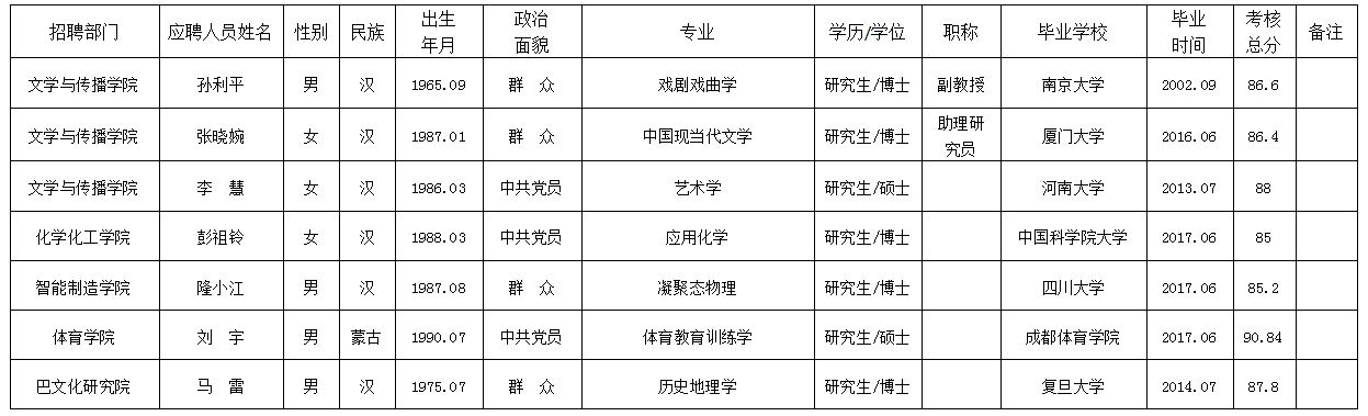 按照《AWC万象城娱乐2017年考核招聘高层次人才、艺术类和体育类专任教师公告》,由学校纪委监督,考核小组对应聘万象城专任教师、科研人员进行了考核。经学校研究,现将考核结果公示如下,公示期限为7个工作日(2017年6月8日至2017年6月16日)。公示期间接受社会监督和举报,举报者应以真实姓名书面或电话向AWC万象城娱乐人事处或纪委反映。监督举报电话:0818-2790077、0818-2790019 邮箱:scwlrsc@126.com、jwjsc@sohu.com。