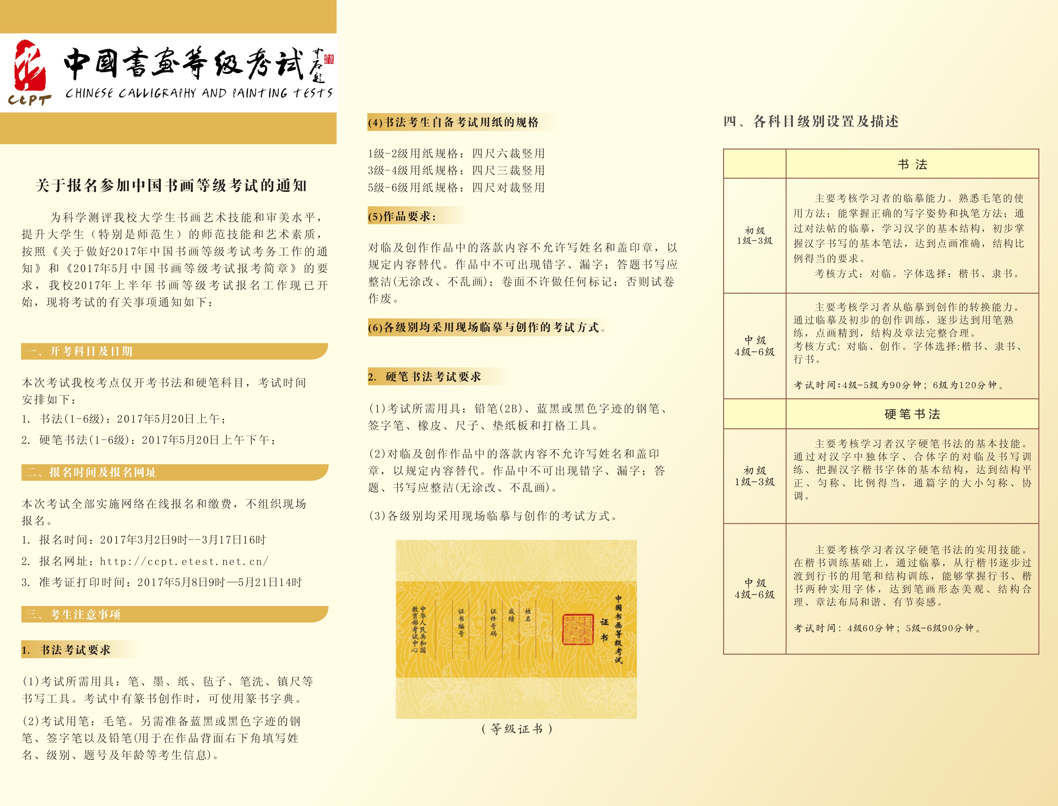 1.书法(1-6级):2017年5月20日上午