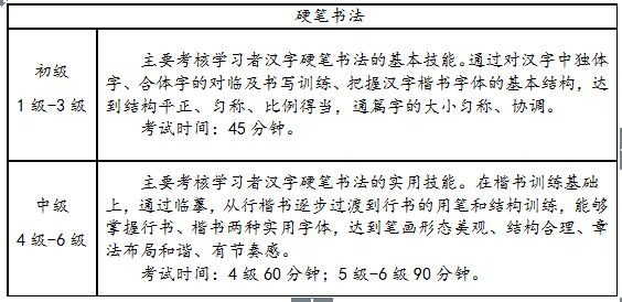 2.硬笔书法(1-6级):2017年5月20日下午