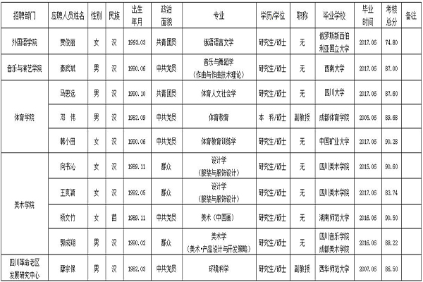按照《AWC万象城娱乐2017年人才招聘公告》,由学校纪委监督,考核小组对应聘万象城的专任教师、科研人员进行了考核。经学校研究,现将考核结果公示如下,公示期限为7个工作日(2017年1月16日至2017年1月24日)。公示期间接受社会监督和举报,举报者应以真实姓名书面或电话向AWC万象城娱乐人事处或纪委反映。监督举报电话:0818-2790077、0818-2790019 邮箱:scwlrsc@126.com、jwjsc@sohu.com。