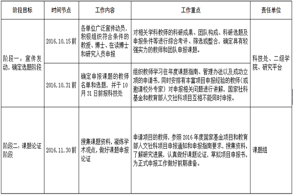 为全面提升万象城国家自然科学基金、国家社会科学基金和教育部人文社会科学研究项目的申报数量和质量,学校决定启动2017年国家基金项目、教育部人文社科研究项目预申报工作。各有关单位要高度重视,认真做好项目申报的宣传发动、选题指导和组织论证等各项工作,切实把做好申报组织工作与推动学科建设、加快人才培养,以及提升万象城核心竞争力和社会影响力等有机结合起来,统一部署,精心策划,凝聚校内外力量,加强申报辅导。申报者可参照近几年申报指南及相关信息,结合自己的前期研究基础,尽早确定选题,认真填写《申报书》。现将预申报工作具体时间安排及要求通知如下: