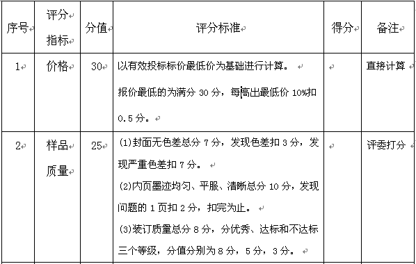 本次采购采用综合评分法,万象城将根据各投标厂商的报价、样品质量、业绩、信誉资质、有无排版印刷学术期刊的经历及服务承诺等因素进行综合测评,得分最高者为第一中标候选厂商,其余依次递补。(评分标准附后)