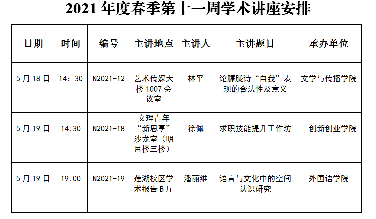 下一条:2021年度春季第十周学术讲座安排