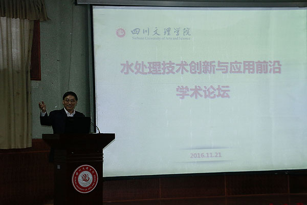 11月21日下午3时,“水处理技术创新与应用前沿”专题学术论坛在南坝校区学术报告厅举行,从事水处理技术创新领域研究的专家学者就相关问题进行研讨。论坛特邀四川省环境保护厅大气环境管理处处长昝学军,中国工程物理研究院原6所副所长、国家城市污水处理及资源化工程技术研究中心总工程师徐庆元,四川大学建筑与环境学院博士生导师、国家烟气脱硫工程技术研究中心副主任蒋文举,四川理工学院化学与环境工程学院副院长、四川省工业有机固体废物资源化处理2011协同创新中心副主任刘兴勇等四位专家教授担任主题演讲嘉宾。校长王成端教授主持论坛。