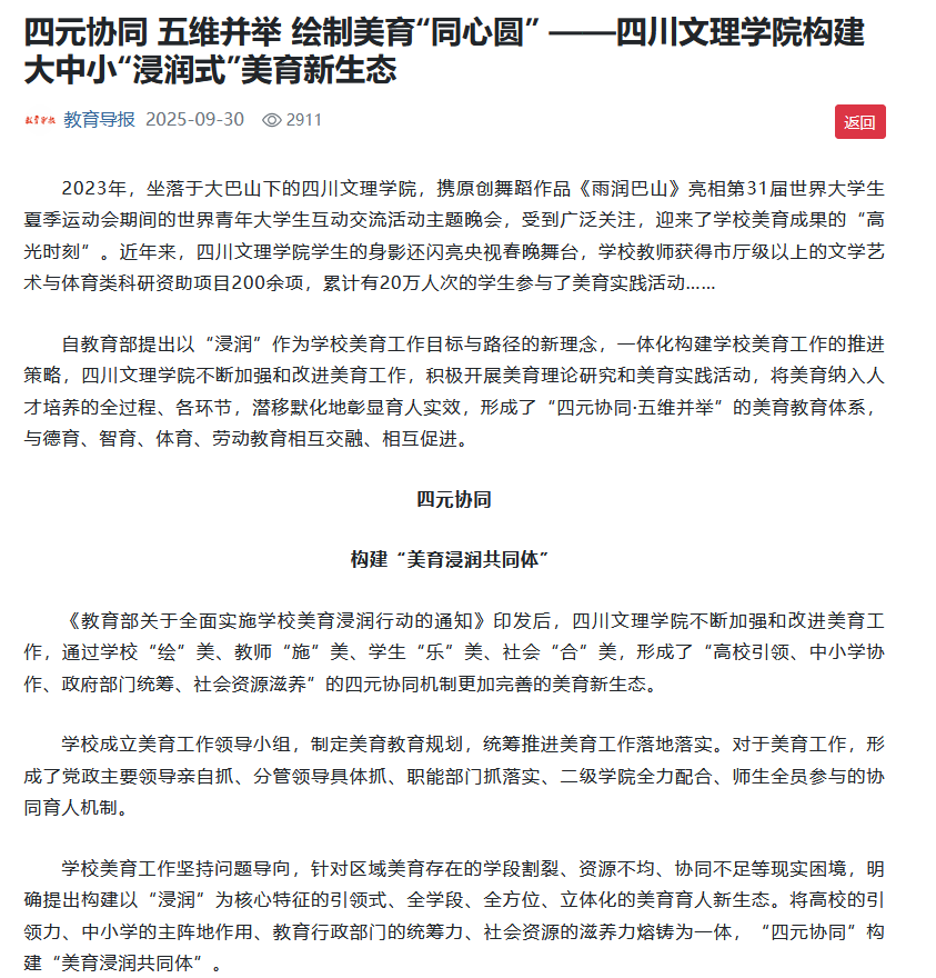 “五维并举”机制在提升美育师资队伍水平上,发挥了非常重要的作用。