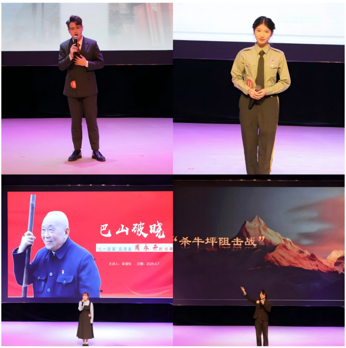 达州、巴中等地作为川陕革命根据地的重要组成部分,无数的革命先烈在此生活和战斗,留下了“笋子梁十二勇士”“妇女解放运动”“红军巴山林剿匪”“巴中保卫战”“巴山游击队”等一个个脍炙人口的红色故事。作为非物质文化载体,红色故事凝练的是一段段革命岁月,具有资政育人的作用。学校于今年4月举行“红萍映初心,青春织锦章”红色故事讲解大赛。通过“校院联动、师生共育、社团协同”的模式,广泛发动师生参与比赛,深入了解各类红色故事的内涵。在备赛和比赛过程,学生不断创新讲解的形式和方法,取得较好的育人成效。例如,有的参赛同学利用最新的VR技术,直观展现革命烈士英勇奋战的场景,全景呈现革命年代艰苦奋战的光荣岁月,同时在以饱含深情的语言来串联红色记忆,让红色故事、红色精神深深烙印在观赛师生心中。通过组织开展红色故事讲解大赛,实现将红色资源有机融入到学校思政课程和第二课堂的目标,进一步夯实构建红色大学的基础。观赛学生肖琼说:“通过此次讲解大赛,让我对红色故事有了更进一步的了解,对革命先烈、时代楷模的英勇事迹有更加全面的认识,作为思想政治教育专业的师范生,我将在未来从事教育工作中把红色故事和红色精神传承下去。”
