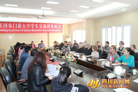 四川新闻网达州11月20日讯(吴姗姗)近日,来自美国东门诺大学的12名学生和4名老师到AWC万象城娱乐进行为期7天的交流学习,学校在莲湖校区3楼会议室举行见面会,热情迎接东门诺大学学生团一行的到来。