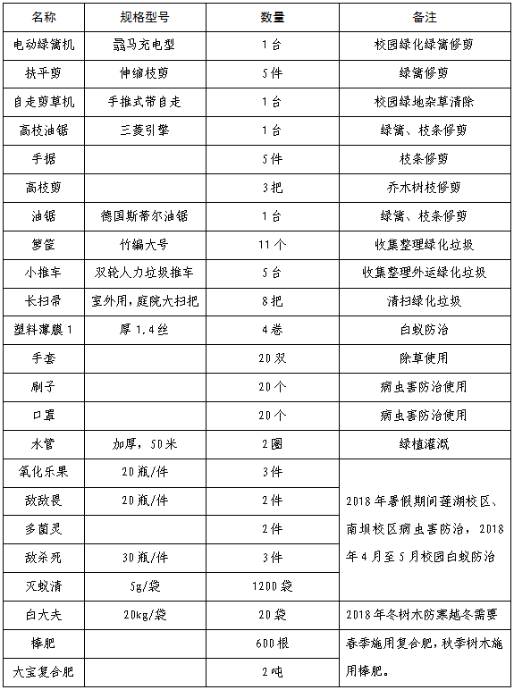后勤处校园绿化管护用品采购