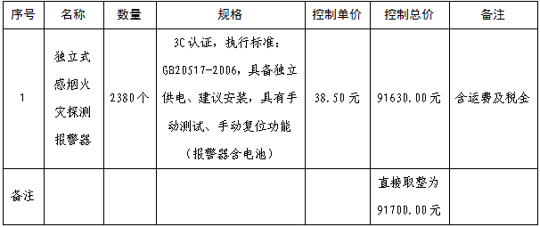 附件:独立式感烟火灾探测报警器采购招标文件