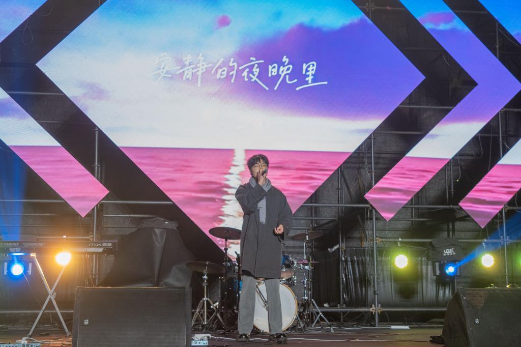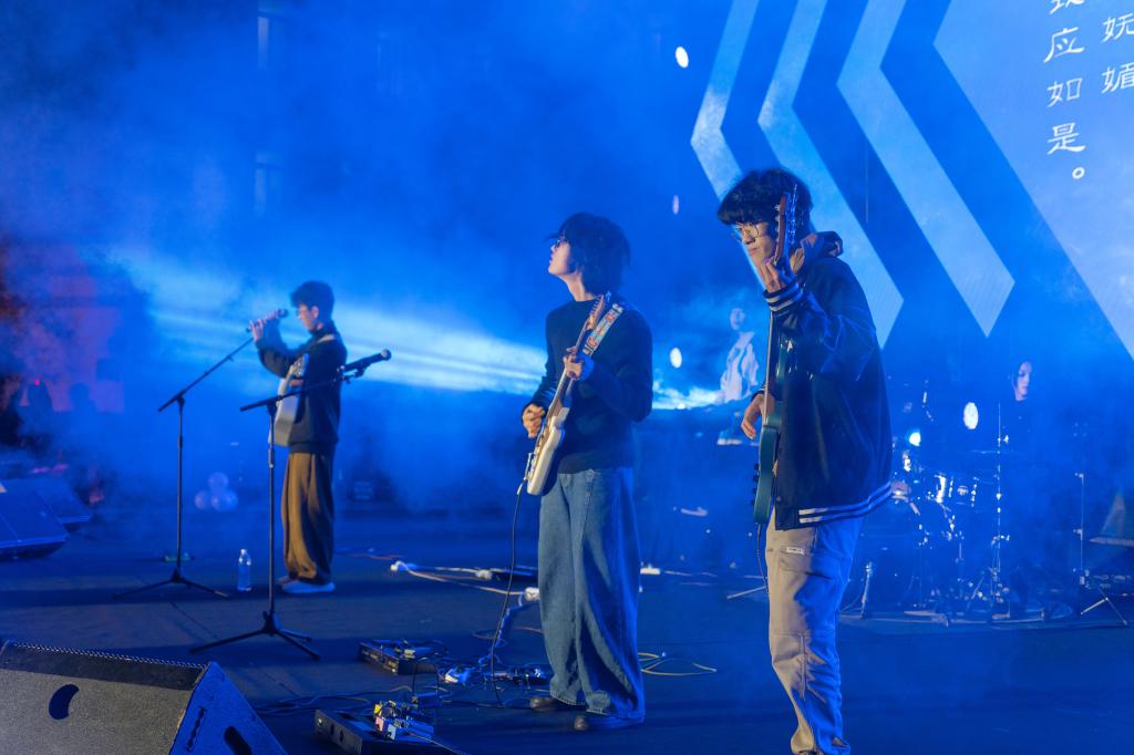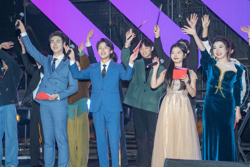 以一朵花的姿态行走,活出热爱的红,让一生花开成画、花落成诗的“埋淌乐队”拉开音乐节的帷幕,四位主持人宣布第十二届校园摇滚音乐节正式开始。原创歌曲《亢龙有悔》激情澎湃,表达了作为大学生、作为新青年的态度,引爆现场气氛。“第三象限乐队”演唱的歌曲让我们拾起对生活的勇气,感受独有的浪漫。在浪潮般的掌声中,邀请到的校外嘉宾“沙丁鱼乐队”闪亮登场,搏得一片喝彩。随后观众情绪高涨,把民谣和摇滚两者结合在一起的“月莱乐队”,希望像球状闪电一样可以穿透墙壁、直击内核、无惧风雨、屹立坚强的“球状闪电乐队”,用音乐诠释内心的世界的“群青乐队”轮番上阵,激情四溢的演唱,彰显对音乐的热爱与执着,掀起一股又一股摇滚浪潮,特别是音乐与演艺学院的李黎霞老师为大家带来的歌曲《Unstoppable》,彻底让观众进入摇滚殿堂,音乐海洋,感受到音乐所带来的希望和力量。最后,全体演员为我们共同唱响《星辰大海》,愿中国青年都摆脱冷气,只是向上走,去爱温热璀璨的星河。