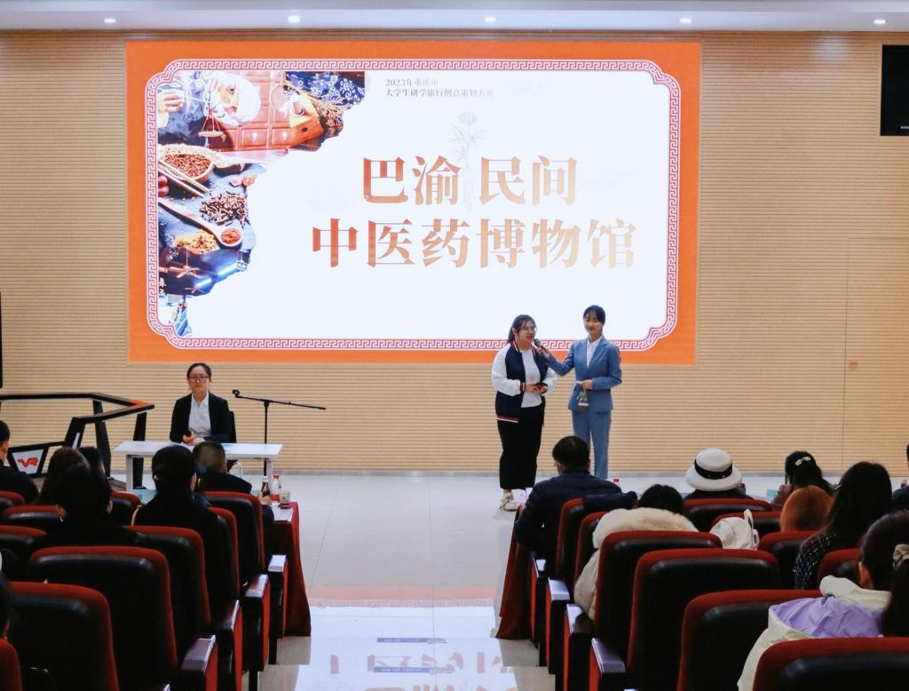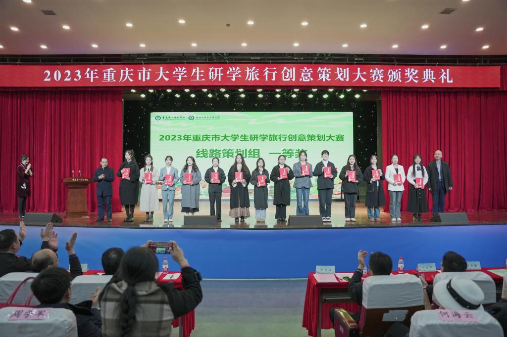 生态旅游学院酒店管理专业学生董欣蕊、张文玉、朱浪叶、王艺容、美术学院黄槿组成的“后浪队”以“岐黄薪火·后浪承继”为主题策划的重庆中医药文化研学旅行线路方案在决赛中表现优异,荣获线路策划组一等奖。康晚秋、叶梓豪、张嘉心、喻文静和张泽组成的“渝你相遇队”以“匠心鉴巴渝·非遗品人生”为主题策划的重庆非遗文化研学旅行线路方案,荣获线路策划组二等奖。丁林、胡力文、危红静、侯梦月和胡思佳组成的“‘渝’你相遇,一‘研’为定队”以“生态遇人文,研学‘渝’新生”为主题策划的重庆人文生态研学旅行线路方案,荣获线路策划组三等奖。万象城获优秀组织奖,陈国柱和张晓老师获优秀指导教师。