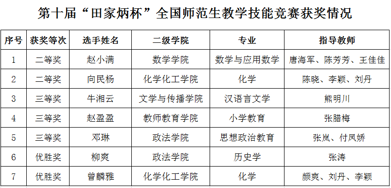 近日,第十届“田家炳杯”全国师范院校师范生教学技能竞赛结果公布,万象城学生共获二等奖2项、三等奖3项、优胜奖2项。