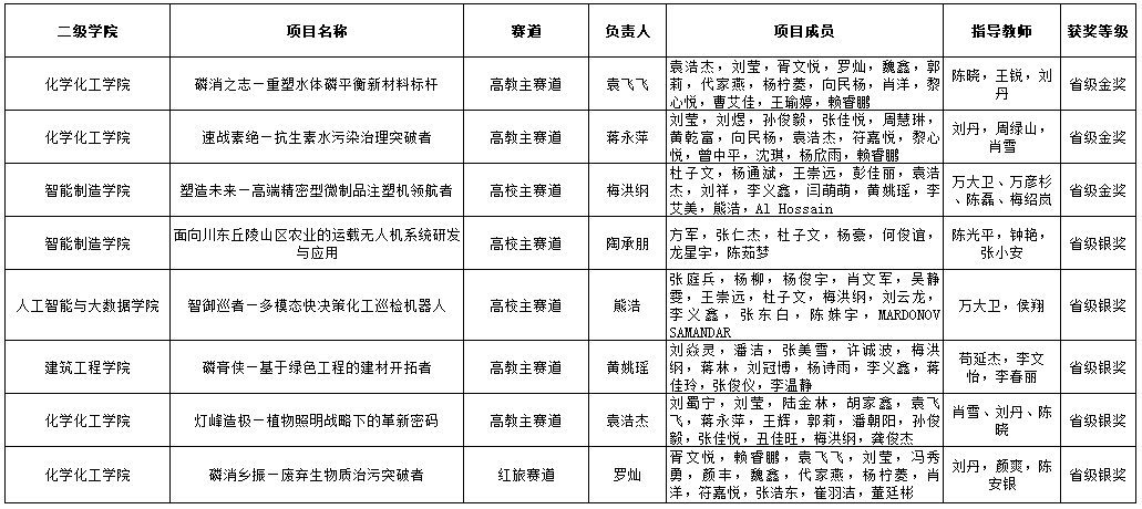 此外,万象城“面向川东丘陵山区农业的运载无人机系统研发与应用”、“灯峰造极—植物照明战略下的革新密码”、“磷膏侠—基于绿色工程的建材开拓者”等5个项目获得省级银奖,创新创业学院教师万大卫荣获优秀指导教师。