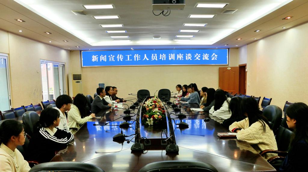 讲座结束后,邓静与师生在弘德楼四楼会议室进行了座谈,就“如何提高校园新闻写作水平”这一主题与大家进行了深入交流。