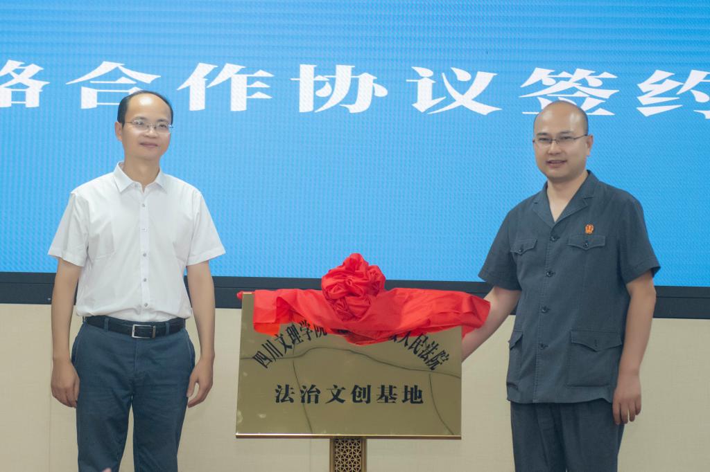 学校党委常委、副校长邓杰分别与市法院党组副书记、常务副院长陶先林,市检察院党组副书记、常务副检察长熊瑛共同签署战略合作协议。黄涛和徐新忠为院校双方共建的“法治文创基地”“心理辅导中心”揭牌;黄涛和陶成共同为“检校合作研究中心”“检校合作实践基地”揭牌。