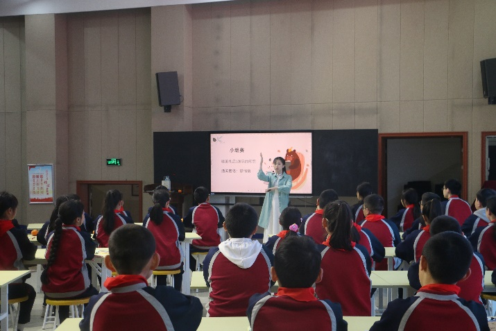 周毖老师桃李满天下仍笔耕不辍,她分享了多年从教生涯中三个学生的故事。周老师绘声绘色的讲解引得听众会心微笑。周老师将新课标对小学高段习作“自我表达、内容具体、感情真实”的要求与不断阅读及勤奋练笔相结合,探索出训练学生写作的路径。她特别强调了仿写的重要性,希望同学们从耳熟能详的课本出发,结合生活实际,进行背景及人物的仿写。